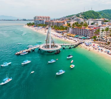 Puerto Vallarta combina playa, montaña y tradición mexicana. Su zona centro y el malecón ofrecen una experiencia cultural, mientras que sus áreas costeras permiten disfrutar del Pacífico mexicano.
