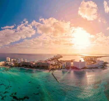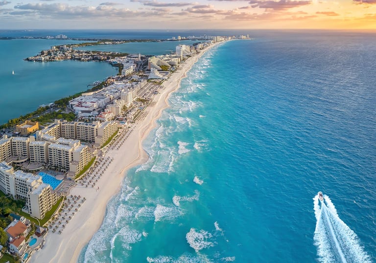 Cancún es uno de los destinos más reconocidos del Caribe mexicano por sus playas de arena blanca y aguas turquesa. Además de su zona costera, cuenta con áreas naturales, sitios arqueológicos cercanos y una amplia infraestructura turística.