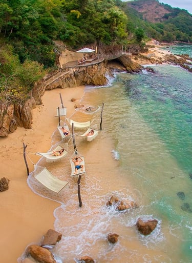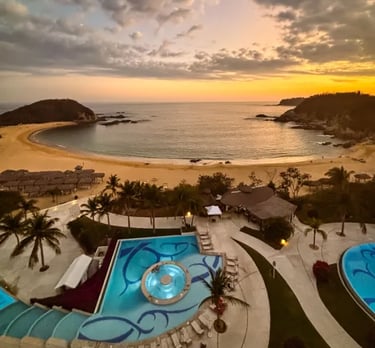 Huatulco es conocido por sus bahías y su entorno natural. Es un destino más tranquilo en comparación con otros polos turísticos, ideal para quienes buscan descanso y contacto con la naturaleza.